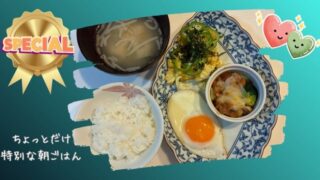 味噌汁とキャベツサラダも添えて、なかなか満足感のある朝ごはんでした。